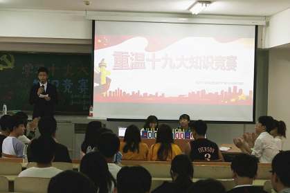 软件学院始终坚持以立德树人为使命,不断创新手段推进党的理论知识进头脑、进课堂、进社团,以知识竞赛为契机,以赛促学、以学助赛,在全院范围内持续掀起学习十九大精神的热潮,引导全院学生以扎实的理论功底和昂扬的精神姿态,肩负起建设新时代的使命与担当。